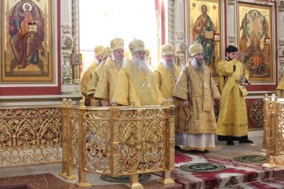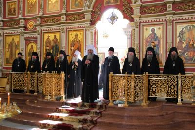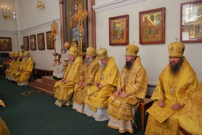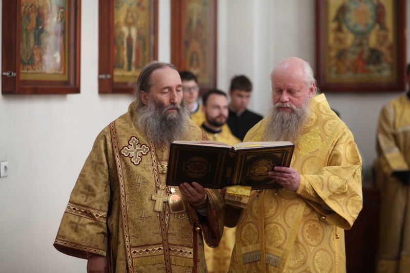 Его Высокопреосвященству сослужили: митрополит Барнаульский и Алтайский Сергий, архиепископ Карагандинский и Шахтинский Севастиан,