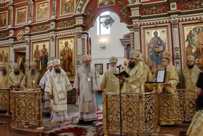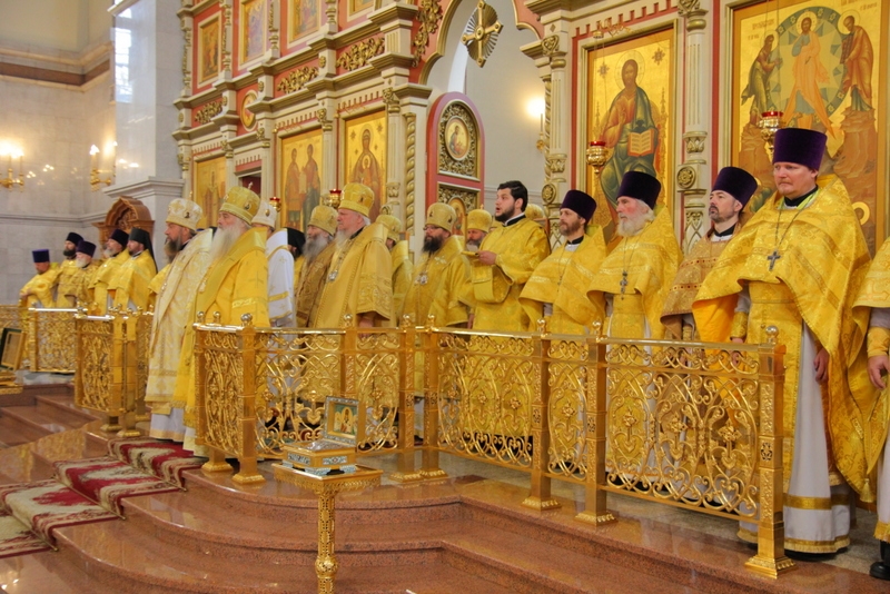 митрополит Барнаульский и Алтайский Сергий, архиепископ Карагандинский и Шахтинский Севастиан, архиепископ Салехардский и Ново-Уренгойский Николай, архиепископ Егорьевский Матфей, викарий Святейшего Патриарха Московского и всея Руси, епископ Арсеньевский и Дальнегорский Гурий, епископ Ейский и Тимашевский Павел, епископ Карасукский и Ордынский Филипп, епископ Нижнетагильский и Невьянский Феодосий, епископ Искитимский и Черепановский Лука, епископ Армавирский и Лабинский Василий, епископ Ванинский и Переясловский Аристарх, епископ Амурский и Чегдомынский Николай, епископ Николаевский и Богородский Иннокентий, секретарь епархиального управления иеромонах Николай (Белозеров), настоятель Спасо-Преображенского собора протоиерей Георгий Сивков, духовенство епархии.