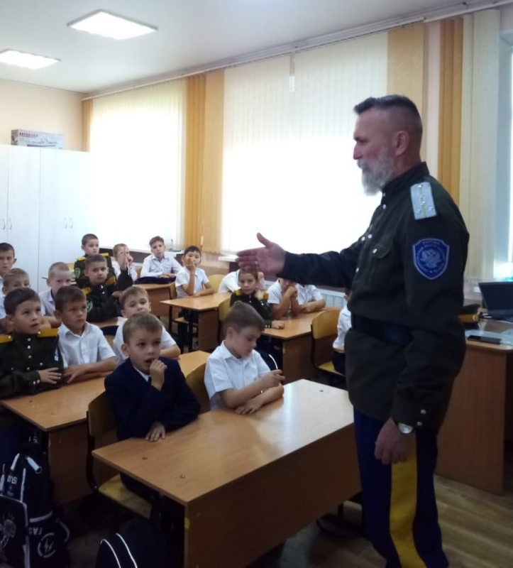 23 сентября 2022 года состоялось очередное занятие с воспитанниками 1-го и 2-го классов казачьей направленности Даубихинской станицы.