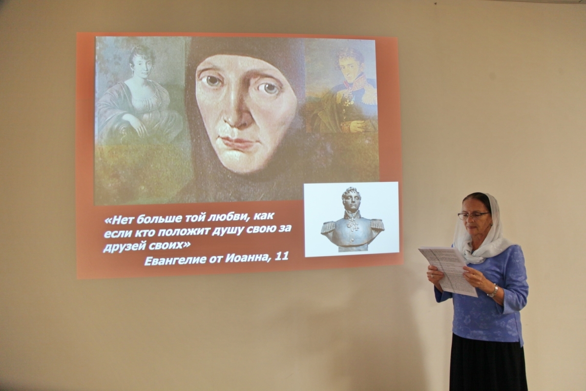 Также Ирина Геннадьевна рассказала о жизни замечательных людей: Маргариты Михайловны и Александра Алексеевича Тучковых. Их жизнь связана со священным городом русских – Можайском, легендарным Бородинским полем. Своей жизнью, своим подвигом они учат нас праведности в делах, смирению, любви к людям. Жизнь Маргариты Михайловны – это величественный гимн любви и верности, самоотверженное служение долгу и безграничное самопожертвование. Награда этим людям наша память о них, уважение традиций нашего православного народа.