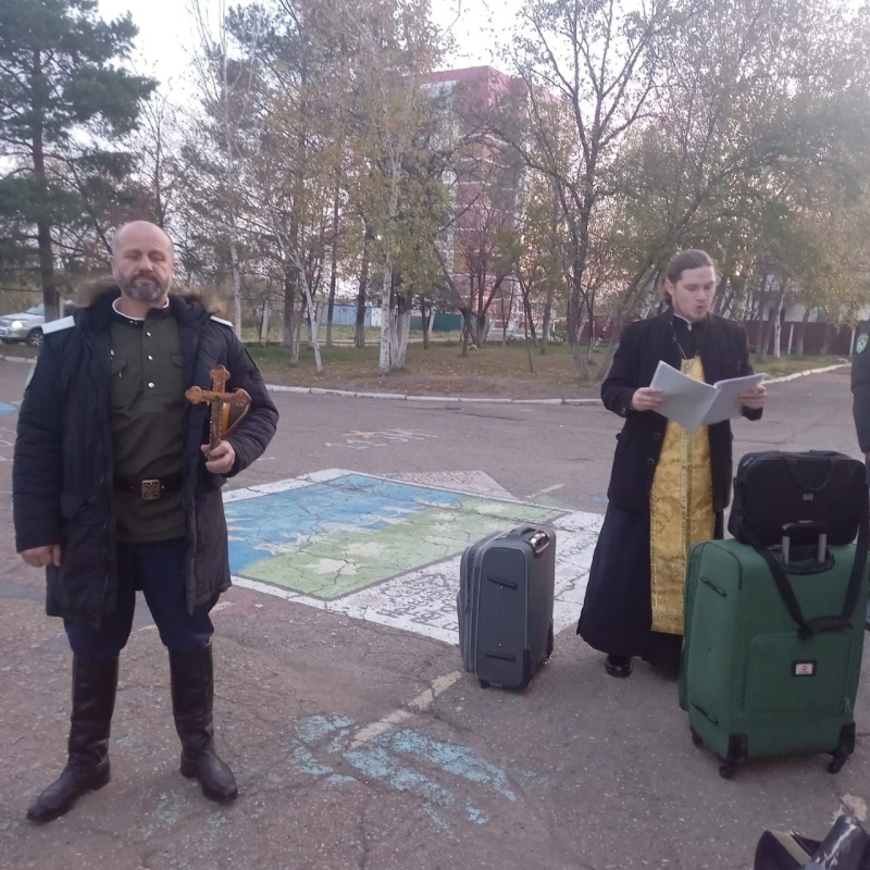 В дорогу только с молитвой. Иерей Димитрий Овчинников благословил братьев Даубихинской станицы в участии в игре «Казачий сполох» и спартакиаде в Волгограде (+ Фото)