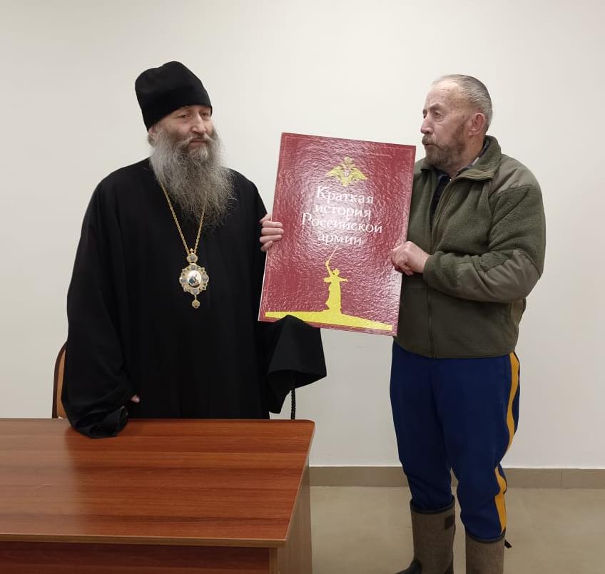 В начале встречи Валерий Павлович Кирпика, старший вахмистр Даубихинской казачьей станицы, подарил владыке книгу «Краткая история российской армии», которая в скором времени будет украшать Музей казачьей культуры в Центре.