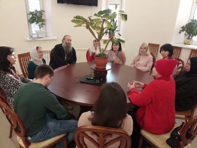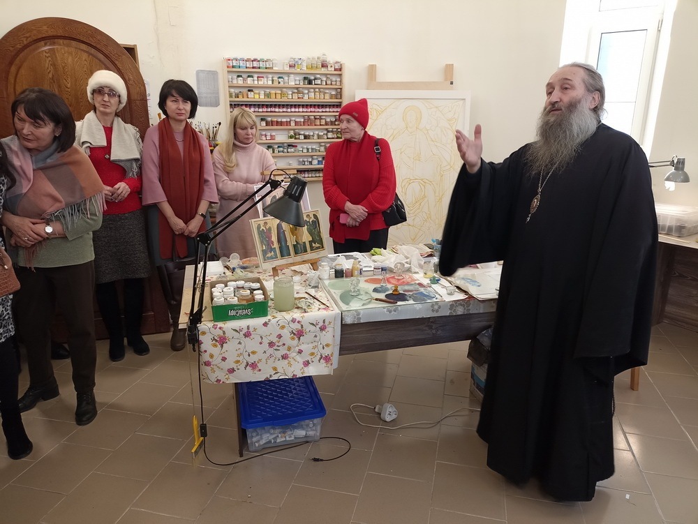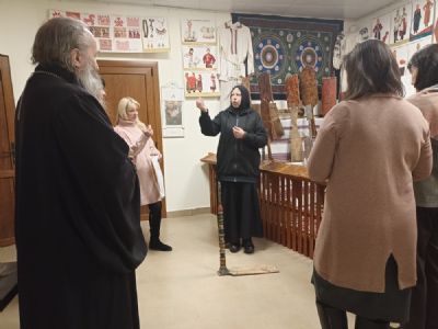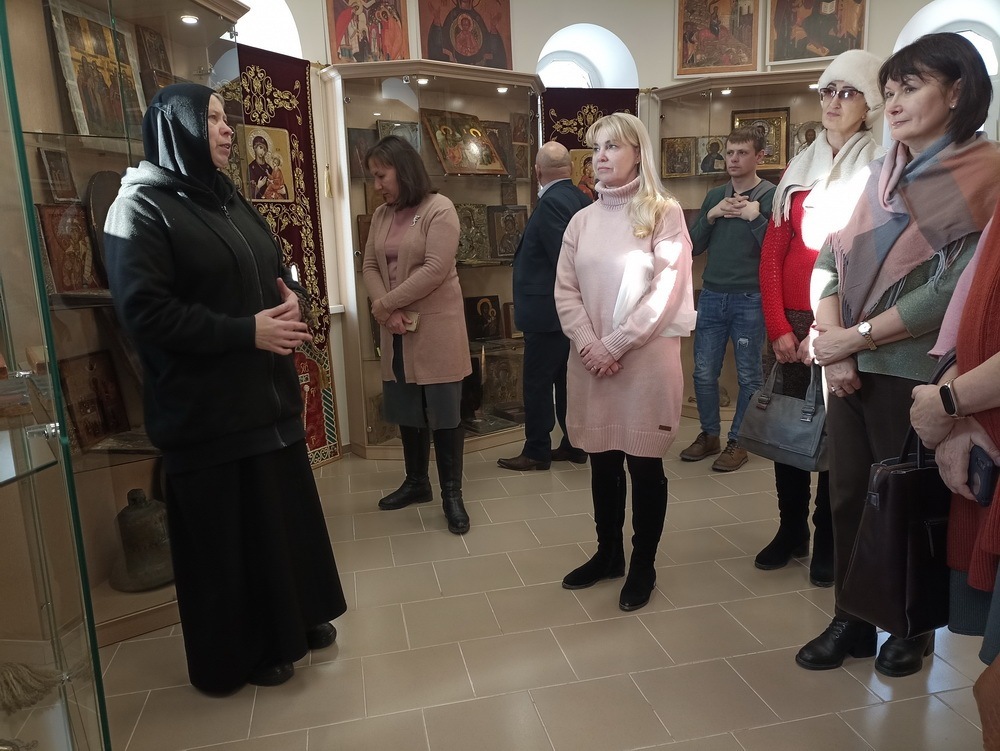 Затем гости посетили Духовно-просветительский центр. Инокиня Мария (Воробьева) показала им церковно-археологичекий кабинет, Музей народного костюма, библиотеку, иконописную мастерскую, современную живопись, а также познакомила гостей с общественной, духовной, миссионерской, культурно-образовательной деятельностью Арсеньевской епархии.