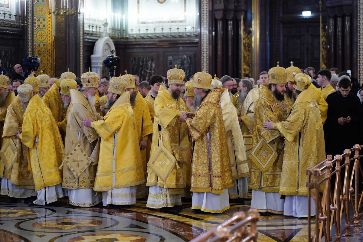 Также Святейшему Владыке сослужили: протопресвитер Владимир Диваков, секретарь Патриарха Московского и всея Руси по г. Москве; протоиерей Михаил Рязанцев, ключарь Храма Христа Спасителя; протоиерей Николай Балашов, советник Патриарха Московского и всея Руси; архимандрит Филарет (Булеков), заместитель председателя ОВЦС МП; архимандрит Алексий (Туриков), личный секретарь Святейшего Патриарха Кирилла; протоиерей Николай Лищенюк, заместитель председателя ОВЦС МП; протоиерей Игорь Якимчук, заместитель председателя ОВЦС МП; архимандрит Вассиан (Змеев), представитель Патриарха Московского и всея Руси при Патриархе Болгарском; протоиерей Максим Козлов, председатель Учебного комитета Русской Православной Церкви; архимандрит Серафим (Шемятовский), представитель Православной Церкви Чешских земель и Словакии; иерей Олег Овчаров, председатель Синодального отдела по взаимодействию с Вооруженными силами и правоохранительными органами, протопресвитер военного и морского духовенства; иерей Дионисий Казанцев, секретарь Святейшего Патриарха по Московской области; иерей Василий Лосев, руководитель Юридической службы Московской митрополии; иеромонах Ермоген (Бурыгин), и.о. председателя Финансово-хозяйственного управления Московского Патриархата; члены Епархиального совета г. Москвы; руководители епархиальных отделов и комиссий, благочинные, духовенство Москвы и Московской митрополии.