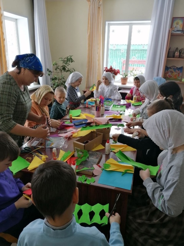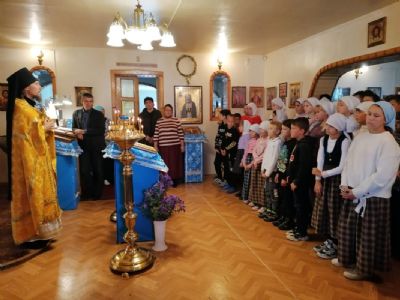 Чем и как живёт воскресная школа? В данное время в ней занимается порядка 80 человек, две группы: младшая и старшая, школу посещают дети, начиная с 6-летнего возраста, самые старшие окончили 9 класс.