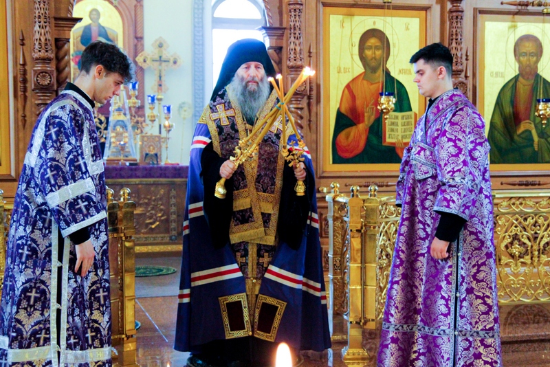 Епископ Арсеньевский и Дальнегорский Гурий сослужил во время Божественной литургии митрополиту Хабаровскому и Приамурскому Артемию в Неделю Крестопоклонную в главном соборе Хабаровска (+ Фото)