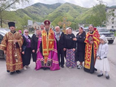 После окончания Литургии состоялся большой Крестный ход по городу. Конечной точкой хода стал Поклонный крест, на месте которого стоял первый храм г. Дальнегорска, который более 100 лет назад освятил архиепископ Евсевий (Никольский).