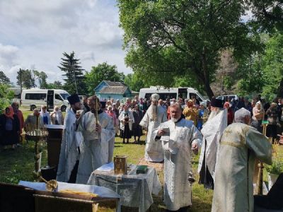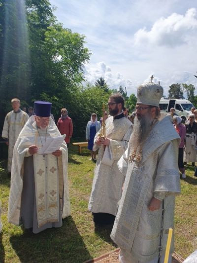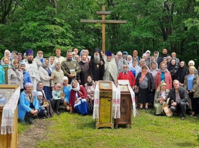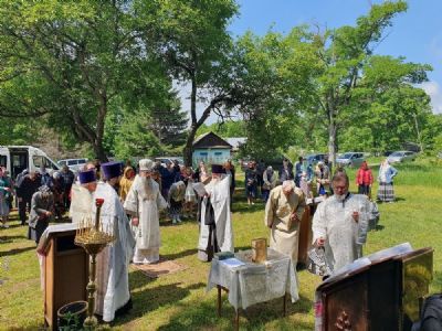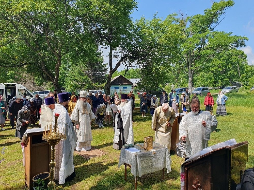 Когда мы прибыли в Антоновку, то там уже устанавливали у креста всё необходимое для молебна. Викарий Владивостокской епархии епископ Уссурийский Иннокентий, председатель епархиальной комиссии по канонизации святых, возглавил молебен свщмч. Павлу Лазареву на месте, где ранее находился Свято-Троицкий храм, настоятелем которого в 1916-1919 гг. являлся поминаемый исповедник веры православной. Владыке сослужили прот. Владимир Капитанюк, благочинный и настоятель Вознесенского храма с. Спасское, прот. Александр Спрыгин, настоятель Успенского храма п. Кировский, иерей Максим Самохвалов, настоятель храма Рождества Богородицы с. Черниговка. Богослужебные песнопения исполнил хор храма Вознесения с. Спасское. Как было радостно и благодатно в момент молитвы. Все и всё прославляло нашего святого: пение птиц и хорошая погода. Молебен завершился чтением жития новомученика и молитвы свщмч. Павлу. После молебна все собрались у креста для общего фота.