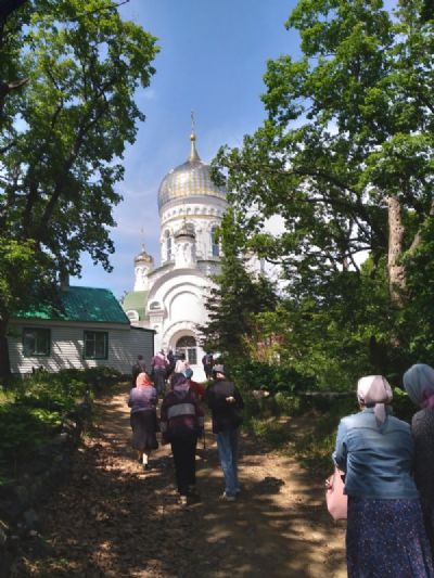 Дальнейший наш путь был в посёлок Кировский в храм в честь Успения Пресвятой Богородице. Там нас встречала добрейшей души человек, Татиана. Она нам подготовила беседку для чаепития с разными сладостями. Но нас было так много, что часть людей расположилась возле неё! Подкрепившись, мы осмотрели территорию, попили водицы с креста. Побеседовали с настоятелем храма прот. Александром Спрыгиным о строительстве храма. Прощались с хорошим чувством, что мы приобрели новых духовных друзей.