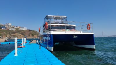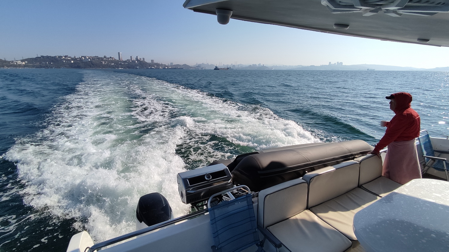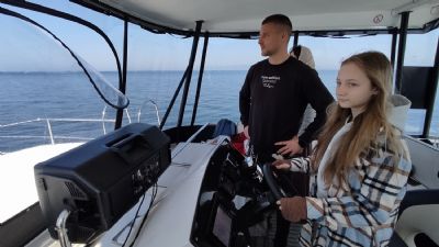 Под чутким руководством Ильи, рулевого катамарана «Корсар», все желающие имели возможность постоять у штурвала, от мала до велика. По возвращению к причалу ветер начал усиливаться и вскоре стали появляться барашки.