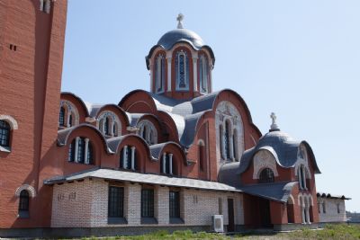 Первый кирпич был заложен в 2016 году, специально для этого он был привезëн с Афонского монастыря. За основу проекта взят Собор сербского Хелендарского монастыря на Афоне. Служба выдалась особенной, в день преполовения Пятидесятницы нашему владыке сослужил иеромонах Ермоген (Крещенко) и иерей Василий Попов, настоятель храма Преображения Господня с. Сивково, Можайского района Московской области.