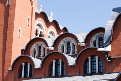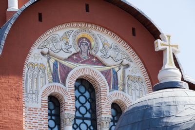 Утром, 10-го Мая, мы отправились на Божественную литургию в удивительный храм в честь Максима Исповедника, который находится в черте города на берегу Солëного озера. Ещё вчера в Соборе нам рассказали про необычный строящийся мозаичный храм. Честно сказать, увиденное превзошло все ожидания, многие не предполагали увидеть здесь такой красоты. Видно, что храм строится кем-то с большой любовью.
