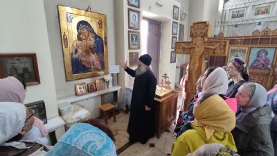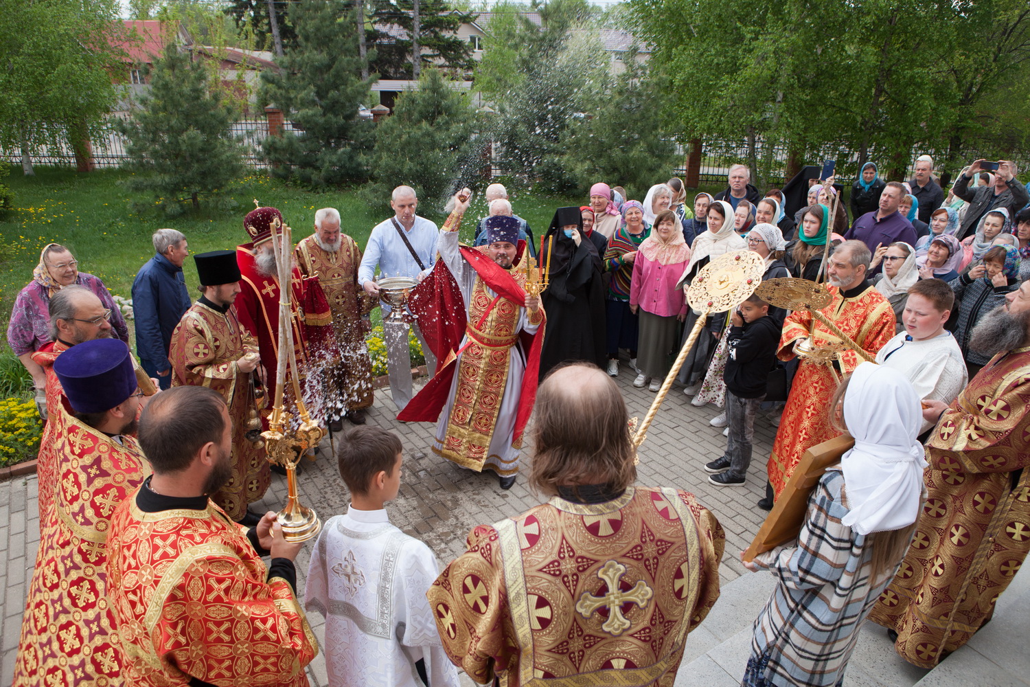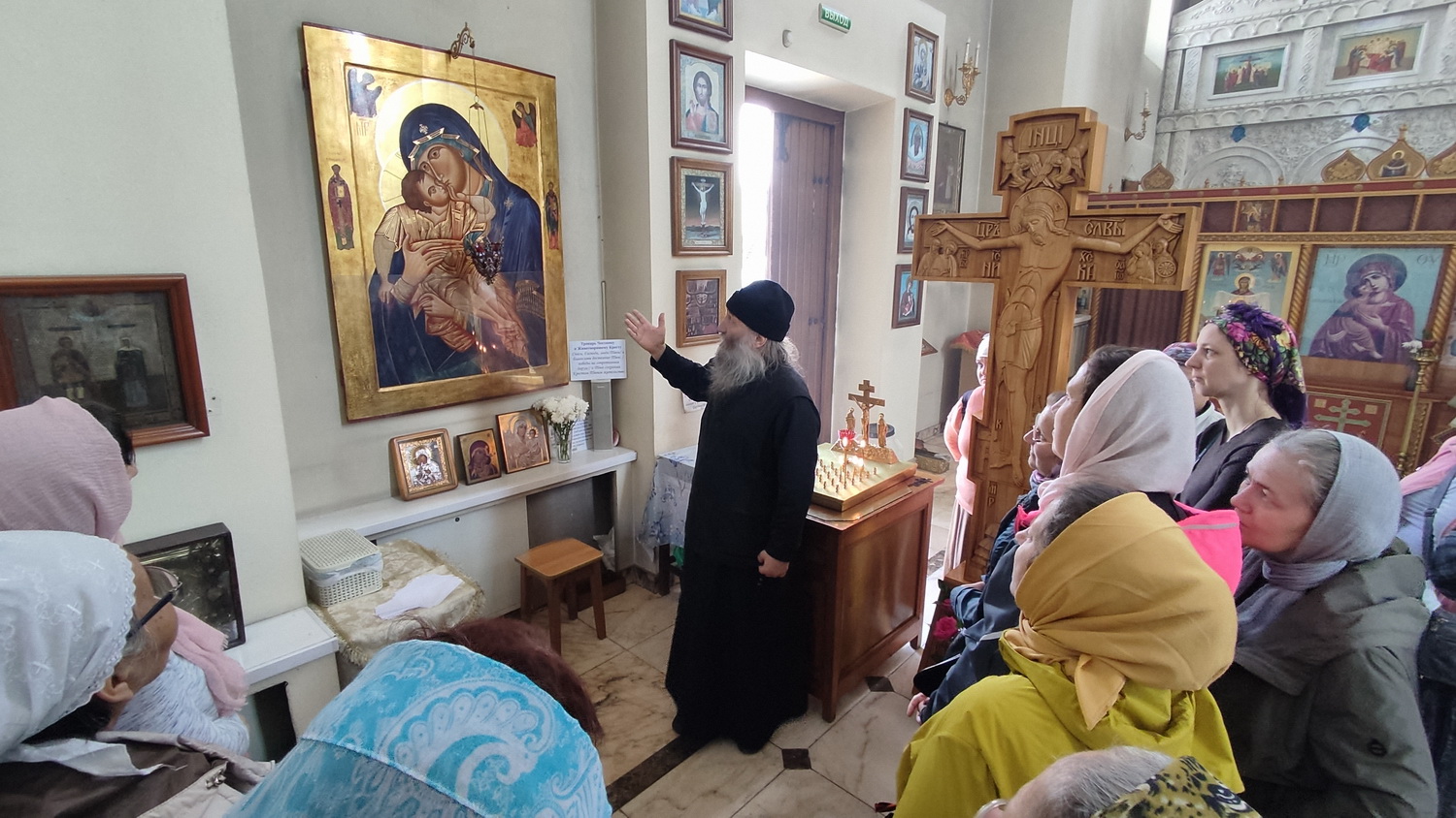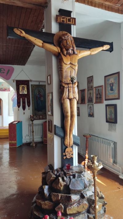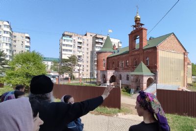 Когда-то здесь располагался склад, магазин Райпо, а в 2001 году помещение передали верующим, и прихожане встретили в нём первую Пасху. Настоятелем служит иеромонах Митрофан (Могутнов), он познакомил нас с храмом, показал хозяйственные помещения и класс Воскресной школы.