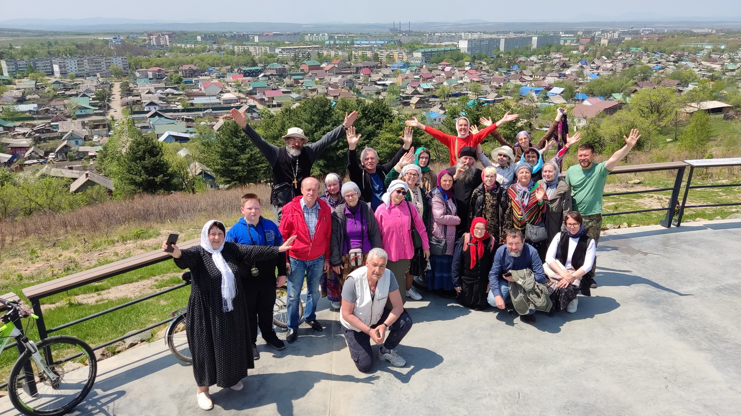 Субботу и воскресение 13 и 14 мая мы провели в Арсеньеве. После Божественной литургии состоялся торжественный крестный ход вокруг Собора. Днём на окраине города мы посетили смотровую площадку-парк с памятниками и информационными стендами, посвященными В.К. Арсеньеву и Дерсу Узале, очень приятное место. Далее нас ждал Дальнегорск.