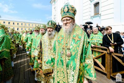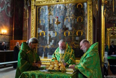 По окончании Литургии Святейший Патриарх Кирилл, члены Священного Синода и иерархи, прибывшие на праздник в Лавру, совершили молебен Игумену земли Русской.