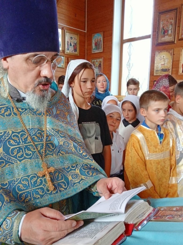 По окончании Благодарственного молебна в честь празднования иконы Божией Матери Прибавления ума отец Андрей поздравил всех учащихся, педагогов и родителей с началом нового учебного года:
