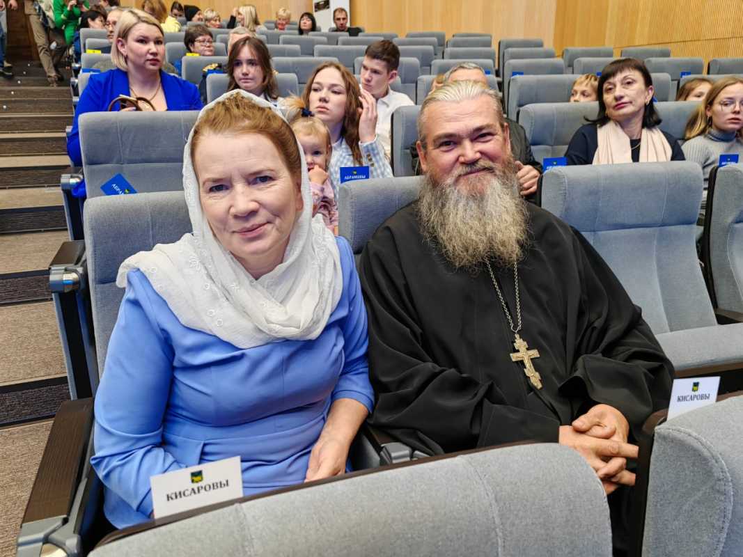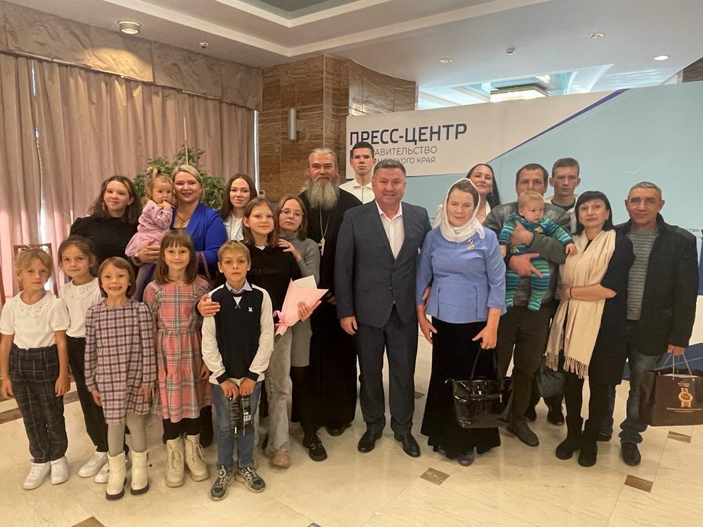 В этот день состоялась торжественная церемония вручения государственных и региональных наград в Правительстве Приморского края. Из рук Губернатора Приморья Олега Николаевича Кожемяко иерей Владимир Абрамов и матушка Елена Абрамова были награждены почетным знаком Приморского края «Родительская доблесть» I степени.