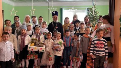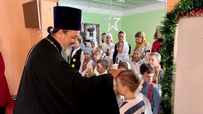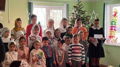 7 января, после праздничного молебна, воскресная школа храма Рождества Христова г. Арсеньева поздравила прихожан с праздником.