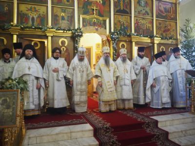 По отпусте собор духовенства совершил славление празднику Рождества Господа нашего Иисуса Христа.