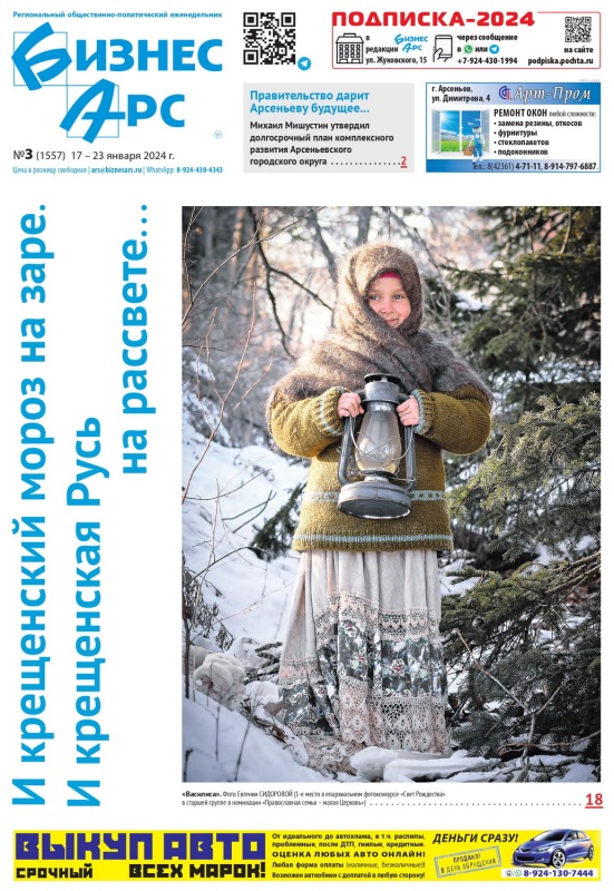 А на первую страницу газеты вынесено фото «Василиса» Евгении Сидоровой, ставшей победителем в старшей группе «Православная семья – малая Церковь».