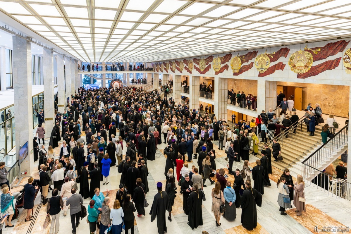 В Государственном Кремлевском дворце собралось свыше 5000 человек: преосвященные архипастыри — члены Священного Синода и Высшего Церковного Совета, главы митрополий, епархиальные архиереи; духовенство Русской Православной Церкви, представители Православных Поместных Церквей, члены Межрелигиозного совета России, полномочные представители Президента РФ в федеральных округах, руководители и представители федеральных и региональных органов власти, ректоры и представители свыше 250 российских и зарубежных вузов, директора и педагоги общеобразовательных организаций, приходские специалисты, деятели культуры.