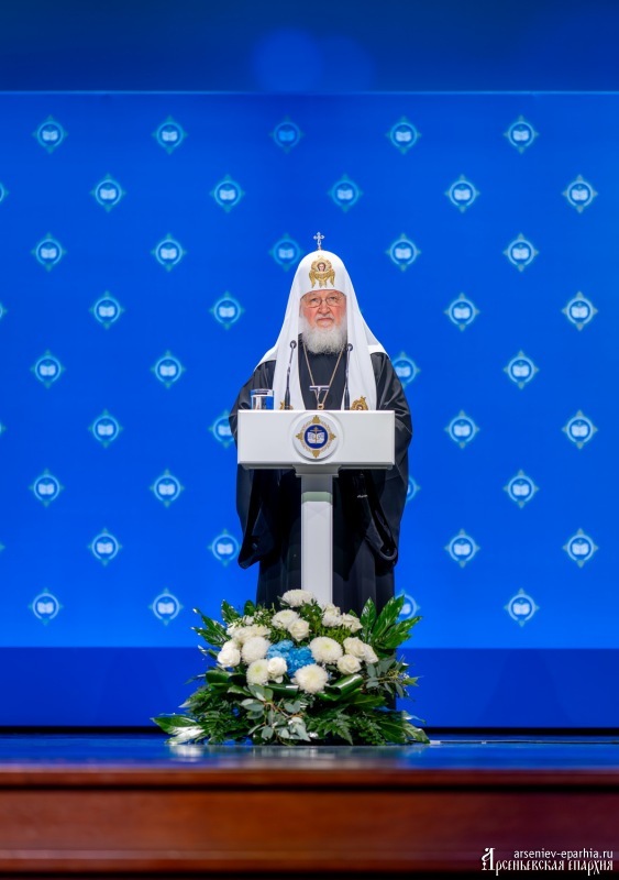 Святейший Патриарх Кирилл выступил с основным докладом перед участниками торжественного собрания: