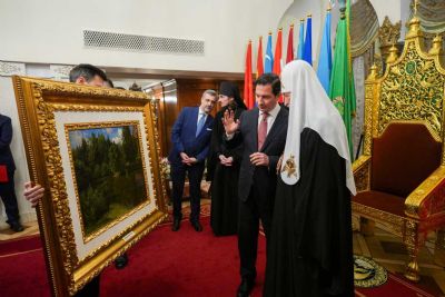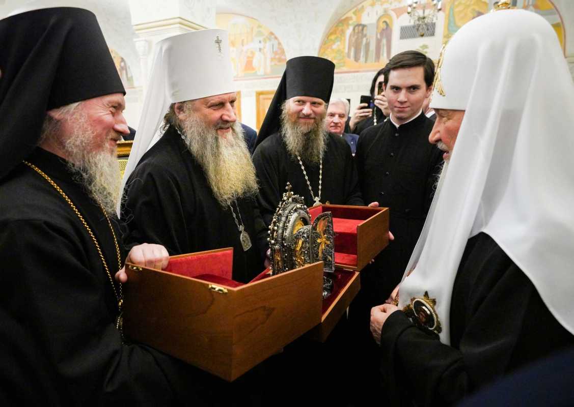 В дар Его Святейшеству собравшиеся передали список Смоленской иконы Божией Матери.