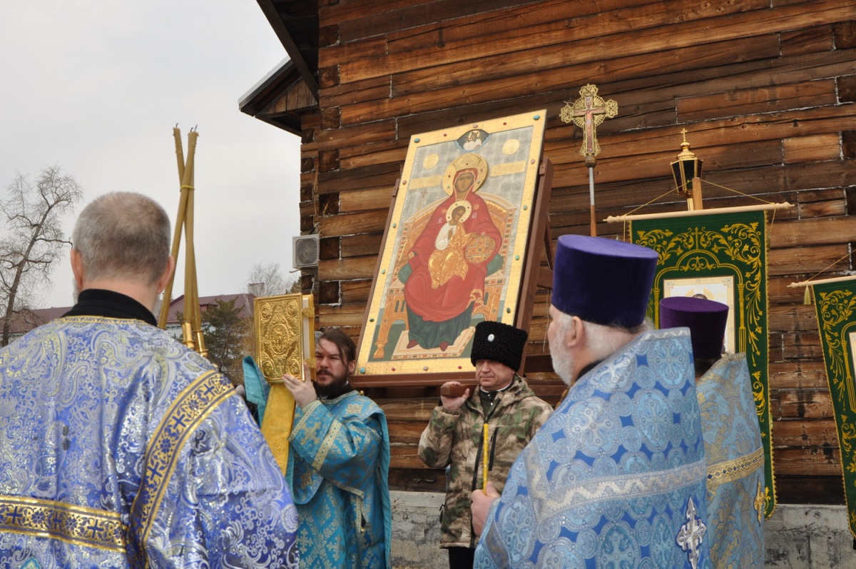 По окончании молебна состоялся Крестный ход вокруг храма и славление перед иконой Божией Матери «Державная».