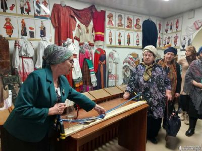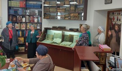 Ирина Геннадьевна рассказала о том, как жили наши предки, показала подлинные русские народные костюмы, предметы быта. Присутствующие смогли прикоснуться к подлинным рукописным и печатным книгам XVII-начала XX вв. в кожаных переплётах.