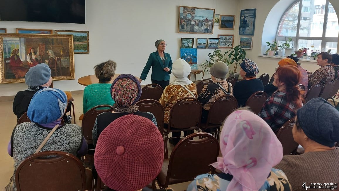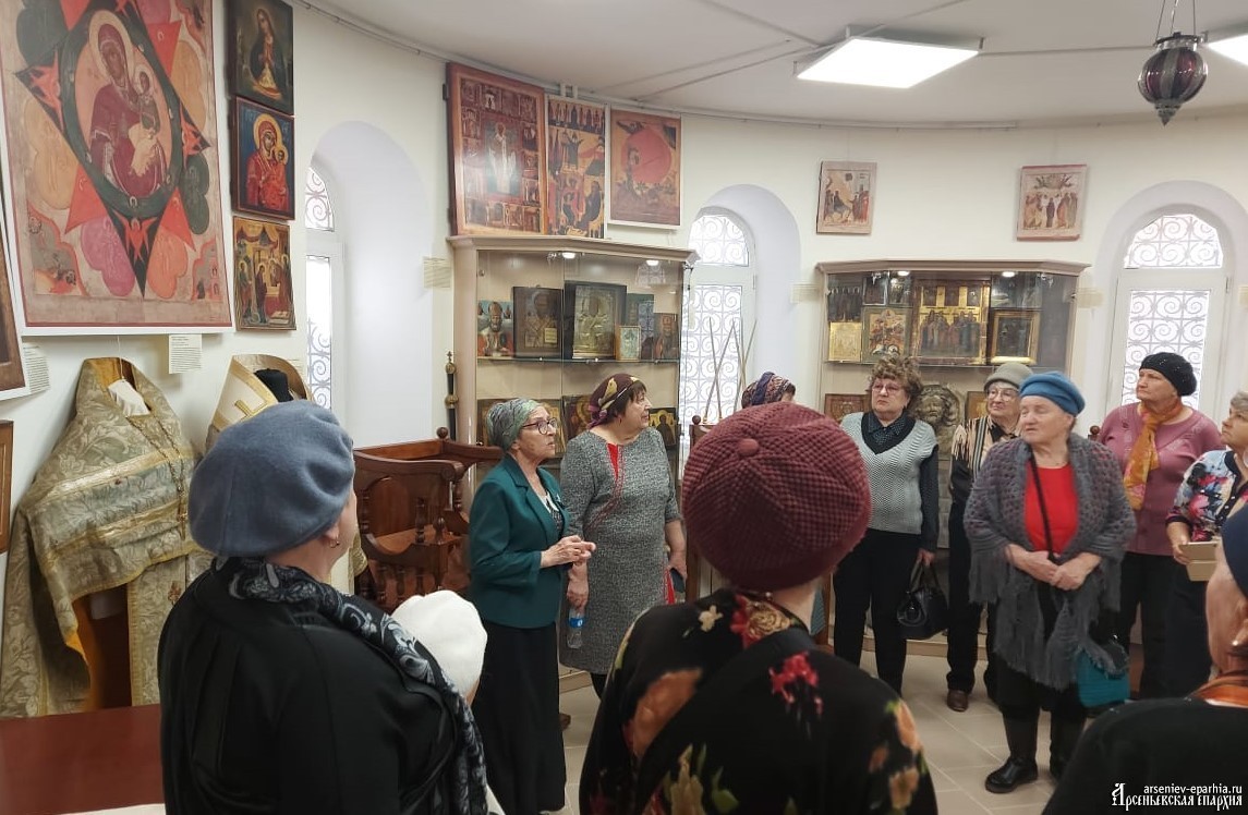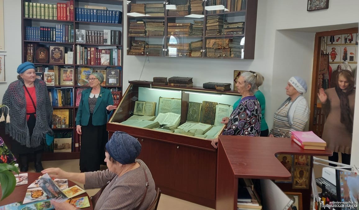 Ирина Геннадьевна Бердникова, руководитель ОРОиК Арсеньевской епархии, провела для гостей ознакомительную экскурсию по Музею русской народной культуры, епархиальной библиотеке, Музею церковной культуры, картинной галерее.