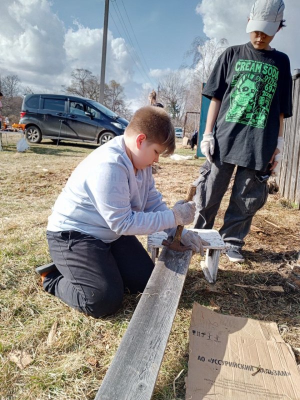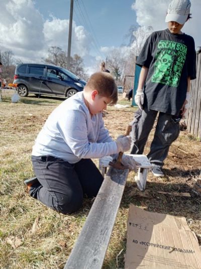 По окончании работы мальчики починили забор, а девочки собрали оставшийся мусор на поляне. Потом побеседовали, попили чай на свежем воздухе и с удовольствием поиграли перед домом. Ребята были счастливы и не хотели уезжать домой.