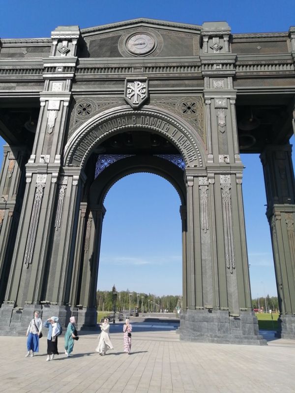Москва. Паломническая поездка началась 2 июня с посещения парка культуры «Патриот» Одинцовского района Московской области, где находится музейно-храмовый комплекс Вооружённых сил Российской Федерации: https://parkpatriot.ru. На его территории разместилась выставочная экспозиция, посвященная истории становления Российского государства и его вооружённых сил, а также храм в честь Воскресения Христова, «посвященный 75-летию победы в Великой Отечественной войне и ратным подвигам русского народа во всех войнах». Центральная икона храма – образ Спаса Нерукотворного.