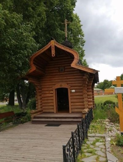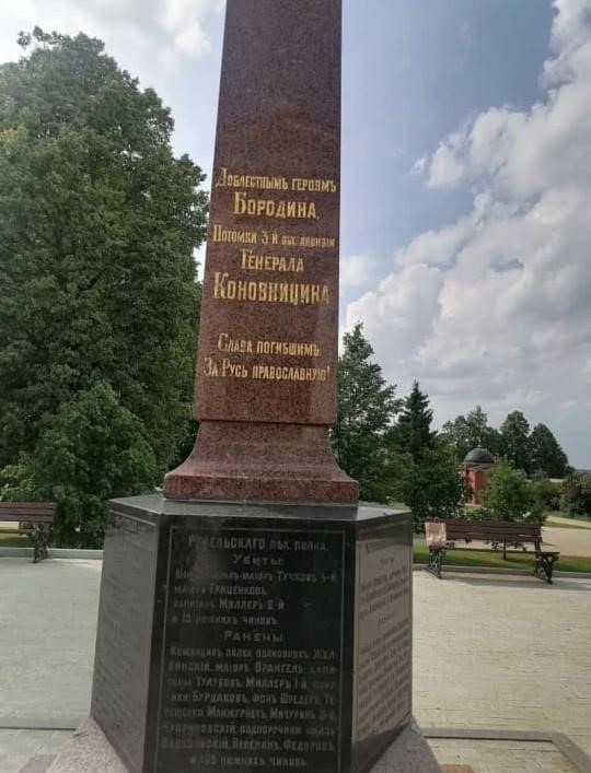 Бородино. В 120 километрах к западу от Москвы раскинулось Бородинское поле, на котором находится Спасо-Бородинский женский монастырь: https://spaso-borodinskiy.ru, куда далее отправились наши паломники. Интересную и подробнейшую экскурсию участникам паломничества провела монахиня Варвава. Она рассказала о Бородинском сражении, о светлом образе игумении Марии (в миру – Маргарита Михайловна Точукова), первой основательнице монастыря. Паломники побывали в часовне, где находится могила преподобной схимонахини Рахили, подвижницы конца 19 и начала 20 века. К Собору новомучеников российских также причислена сестра Спасо-Бородинского монастыря – инокиня Александра. А еще мать Варвара рассказала о недавнем чуде, которое произошло в 2018 г. Председателю Отдела внешних церковных связей Московского патриархата митрополиту Волоколамскому Илариону пришло письмо из Германии от графа Вольфганга Кастеля. В нём сообщалось, что граф унаследовал от отца – немецкого офицера Георга Кастеля – Тихвинскую икону Божией Матери. Как рассказывал Вольфгангу отец, она была приобретена им у двух монахинь Спасо-Бородинского монастыря в деревне Острицы 30 октября 1941 г. В своем письме Вольфганг Кастель изъявил желание возвратить икону «по месту её первоначального пребывания». После реставрации Тихвинская икона Божией Матери в обновленном виде вернулась в родную обитель. Здесь она обрела своё новое место во Владимирском соборе.