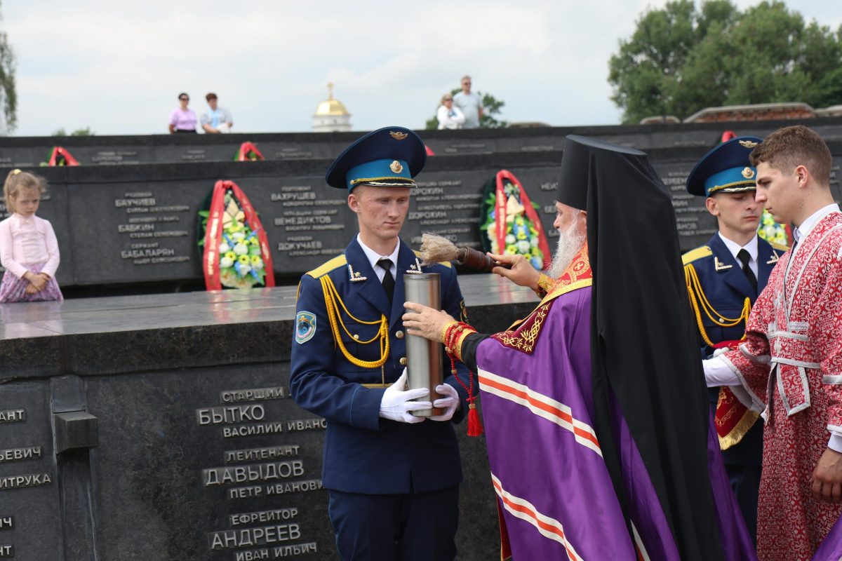 Затем духовенство и миряне направились крестным ходом к площади Церемониалов, где архиепископ Брестский и Кобринский Иоанн, епископ Арсеньевский и Дальнегорский Гурий в числе других высоких гостей мероприятия возложили цветы к некрополю. После чего Его Высокопреосвященство архиепископ Иоанн произвел закладку земли в капсулу с братской могилы.