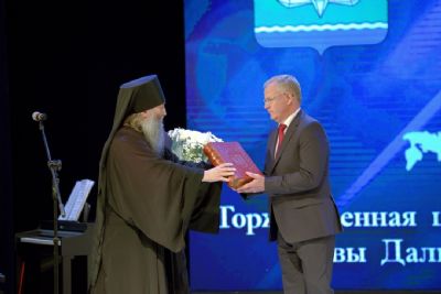 Епископ Гурий поздравил нового главу с вступлением в должность, отметив плотную работу Арсеньевской епархии и Дальнегорского городского округа и выразил надежду на дальнейшее сотрудничество, также благословил Александра Михайловича на добрые дела, подарив Библию в кожаном переплете и букет белых роз.
