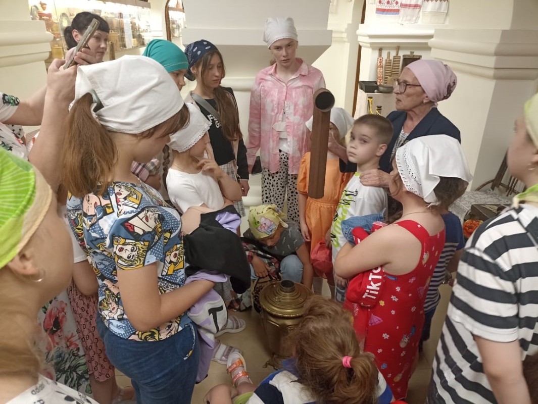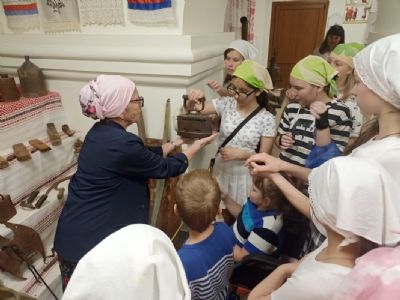 Затем гости побывали на экскурсии в музее русской народной культуры. Дети познакомились с традиционной культурой, увидели подлинные женские костюмы разных регионов, узнали о ремеслах, о буднях крестьян, о хозяйственных заботах и обычаях. Смогли не только потрогать экспонаты, но и попробовать их в деле.