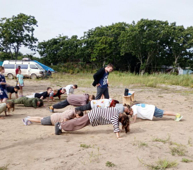 Каждое утро, после утренних молитв, команды проводили весëлую зарядку.