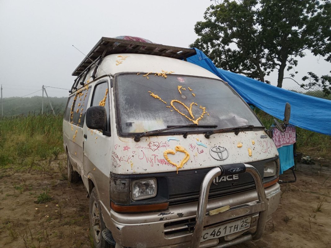 Традиционно, в последнюю ночь, ребята пошалили, дождались пока все уснут и раскрасили всех и вся зубной пастой. Особенно тщательно ребята постарались над микроавтобусом любимого Сан Саныча.