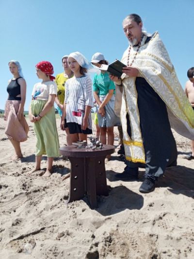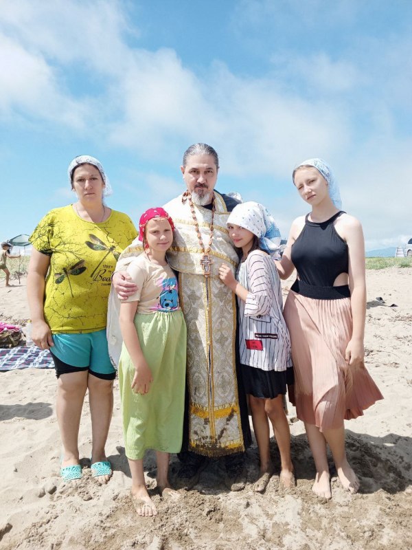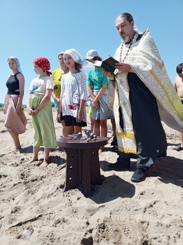 На третий день на берегу моря иерей Андрей Кузнецов, настоятель храма Успения Божией Матери с. Новосысоевка, организатор поездки, провел Таинство Крещения. Крещение приняли две девочки 10 лет из Новосысоевки.