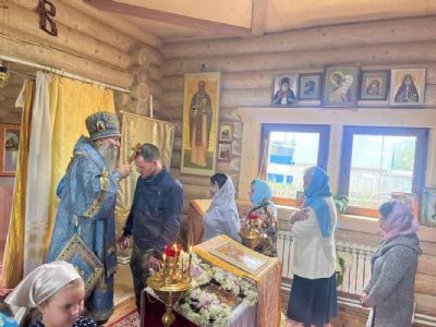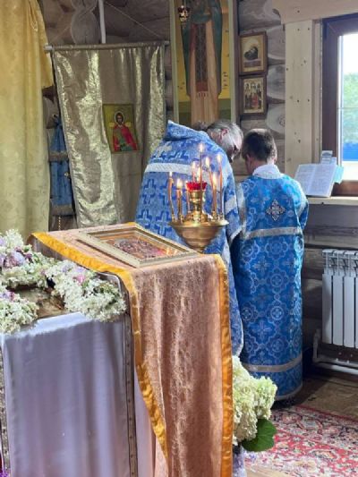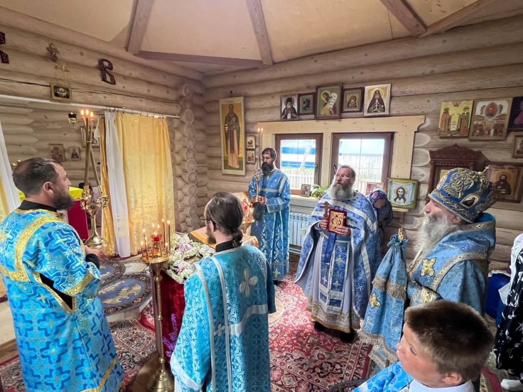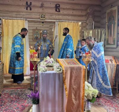 На следующий день, 1 сентября, в Неделю 10-ю по Пятидесятнице, Донской иконы Божией Матери, правящий архиерей возглавил Божественную Литургию в этом же храме в сослужении тех же клириков. На Богослужении присутствовало 35 человек. После состоялась праздничная трапеза, и все смогли сделать общее фото на память.