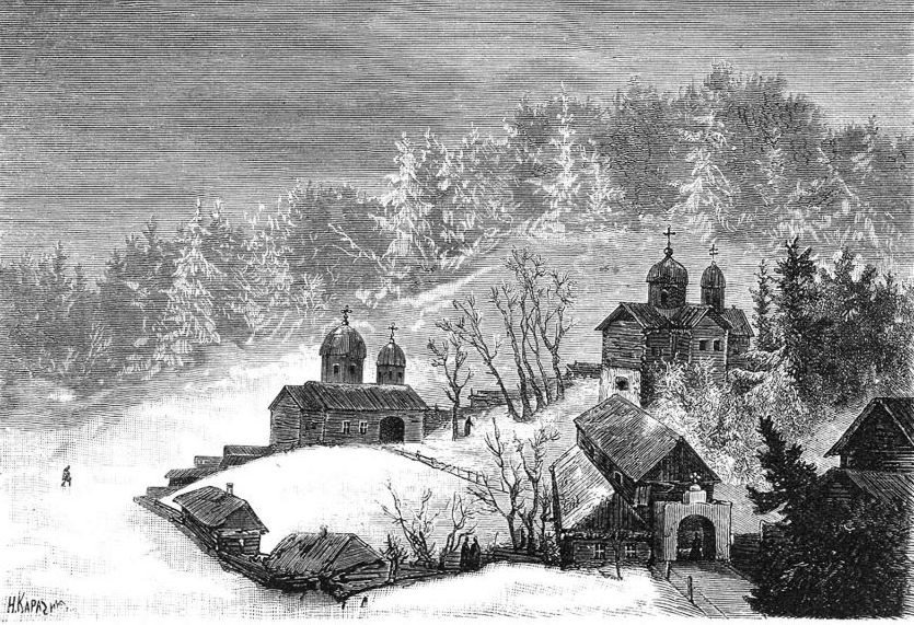 Чикойский монастырь близ Урлука. Рис. Н.Каразина, грав. М. Рашевского, 1880 г.