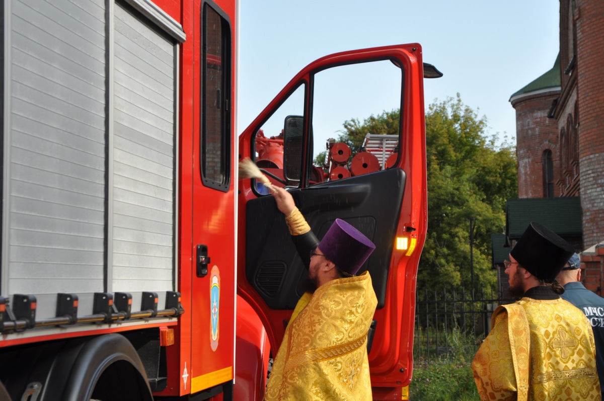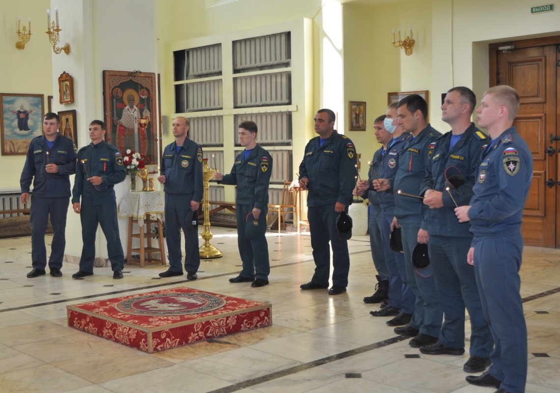 По окончании молебна батюшка окропил спасателей и их спецмашины святой водой.