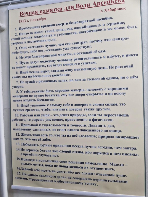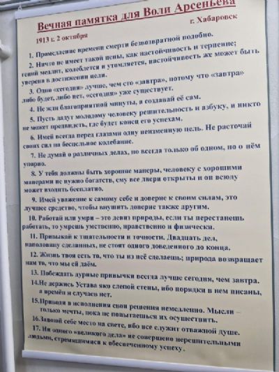 Вызывает интерес, например, «Вечная памятка для Воли Арсеньева» – свод жизненных правил Владимира Клавдиевича для его сына. Это не просто слова, а глубокая житейская мудрость…