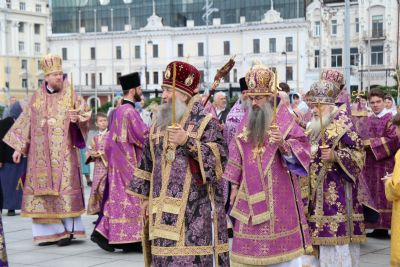Его Высокопреосвященству сослужили: митрополит Вениамин (Пушкарь); митрополит Владивостокский и Приморский Владимир; епископ Уссурийский Иннокентий, викарий Владивостокской епархии; епископ Находкинский и Преображенский Николай; епископ Арсеньевский и Дальнегорский Гурий; епископ Ванинский и Переяславский Аристарх.