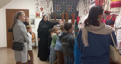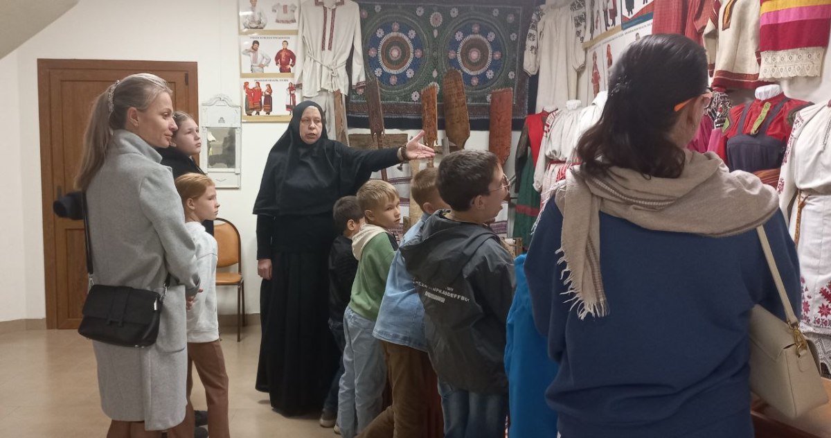 Инокиня Мария (Воробьева), руководитель грантовых проектов Арсеньевской епархии, провела для детей музейный урок «Преданья старины глубокой». Ребята познакомились с традиционной культурой, увидели подлинные женские костюмы разных регионов, узнали о ремеслах, о буднях крестьян, о хозяйственных заботах и обычаях. Смогли не только потрогать экспонаты, но и попробовать их в деле.