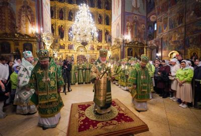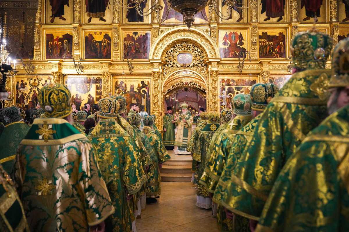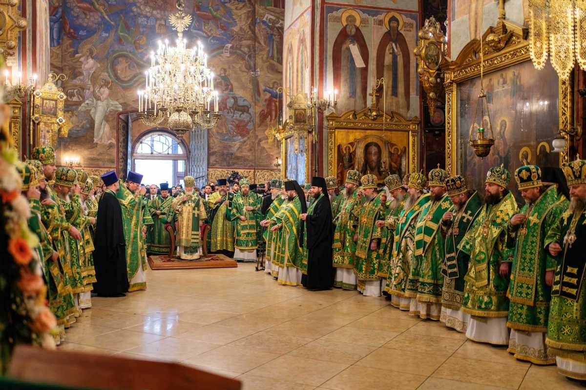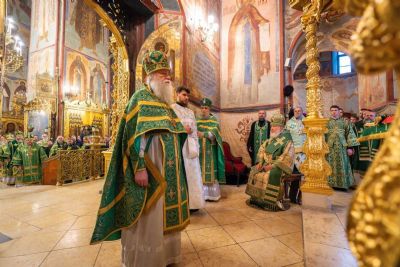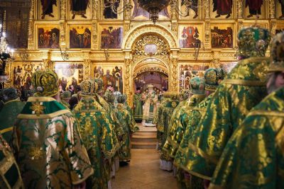 В Соборе молились архиереи, настоятельницы женских монастырей, священнослужители, монашествующие и паломники, прибывшие на торжества в Троице-Сергиеву лавру.
