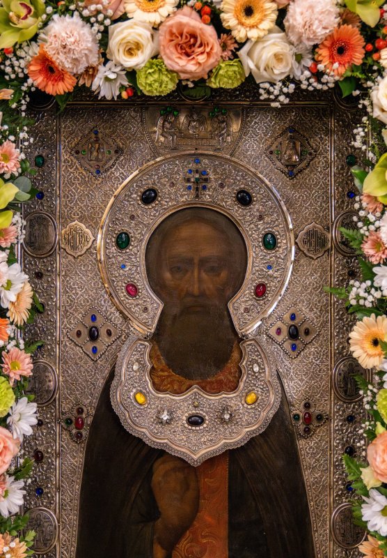 Епископ Сергиево-Посадский и Дмитровский Кирилл приветствовал Святейшего Владыку и преподнес Его Святейшеству ковчег с частицами святых мощей преподобного Сергия Радонежского, святителя Иннокентия Московского, просветителя Сибири и Аляски, преподобного Максима Грека и преподобного Антония Радонежского.