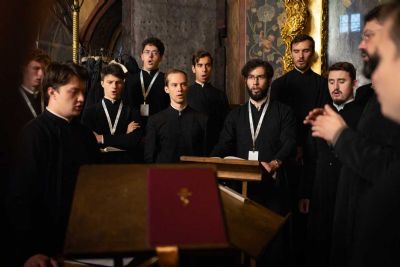 Богослужебные песнопения исполнил братский хор Троице-Сергиевой лавры под управлением иеромонаха Нестора (Волкова) и Сергея Сухарева.