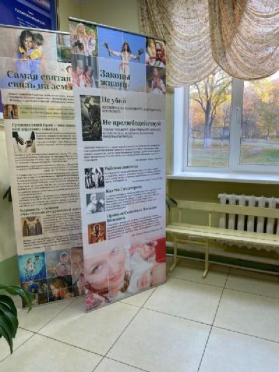 На мобильных баннерных стендах каждый учащийся школы, педагоги и родители смогут познакомиться с информацией о семейных ценностях, негативном влиянии искусственного прерывания беременности на личность в нравственном, медицинском, социальном и историческом отношении и др.