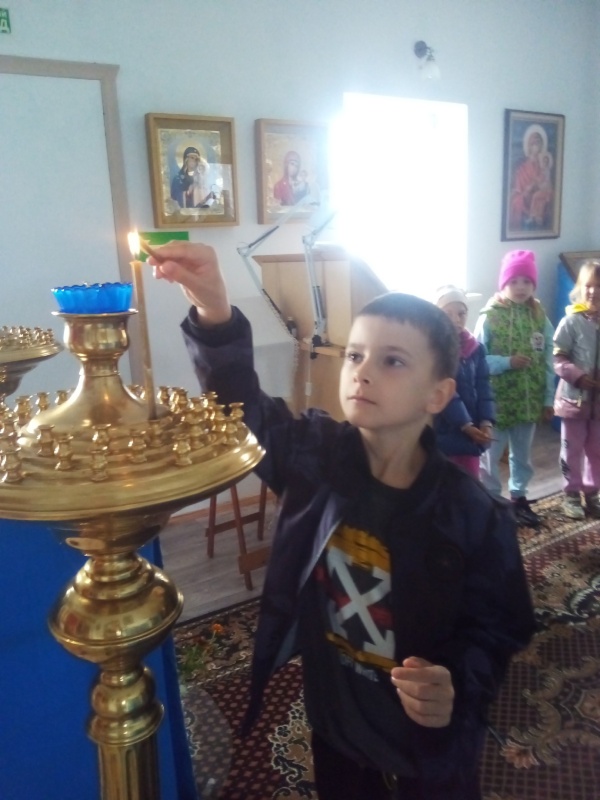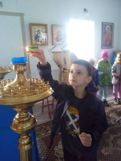 Ребята из первого класса посетили сельскую церковь и поставили свечи за здоровье родных и близких.